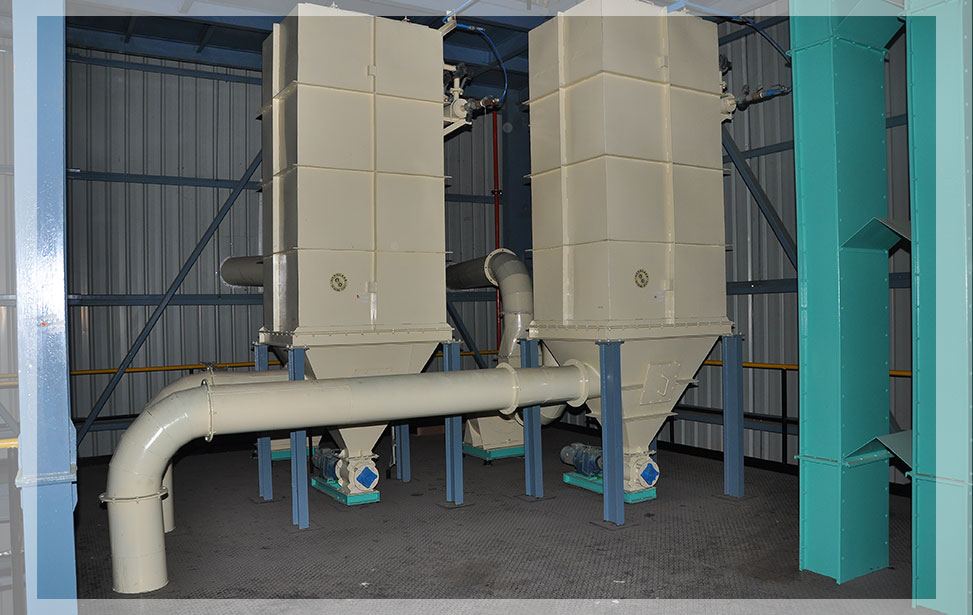 Aspiration system as shown above can effectively control the emission of dust at dumping ponts mounted on the conveying sectoin.They can also be fitted on Storage Bins to absorb dust particles during the filling and emptying process.