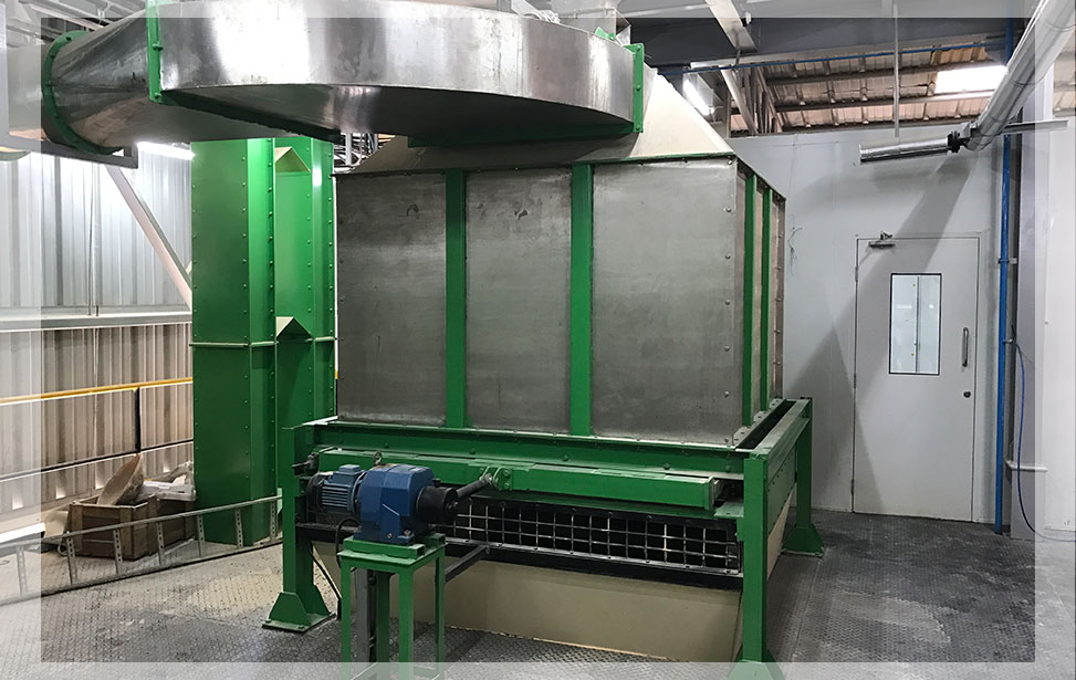The product moves in the downward direction continuously following the concept of ‘first in first out’ while cool air passes through the product in an upward direction. This ensures transfer of heat between the product and the air passing resulting in the cooling of the product to ambient temperature.